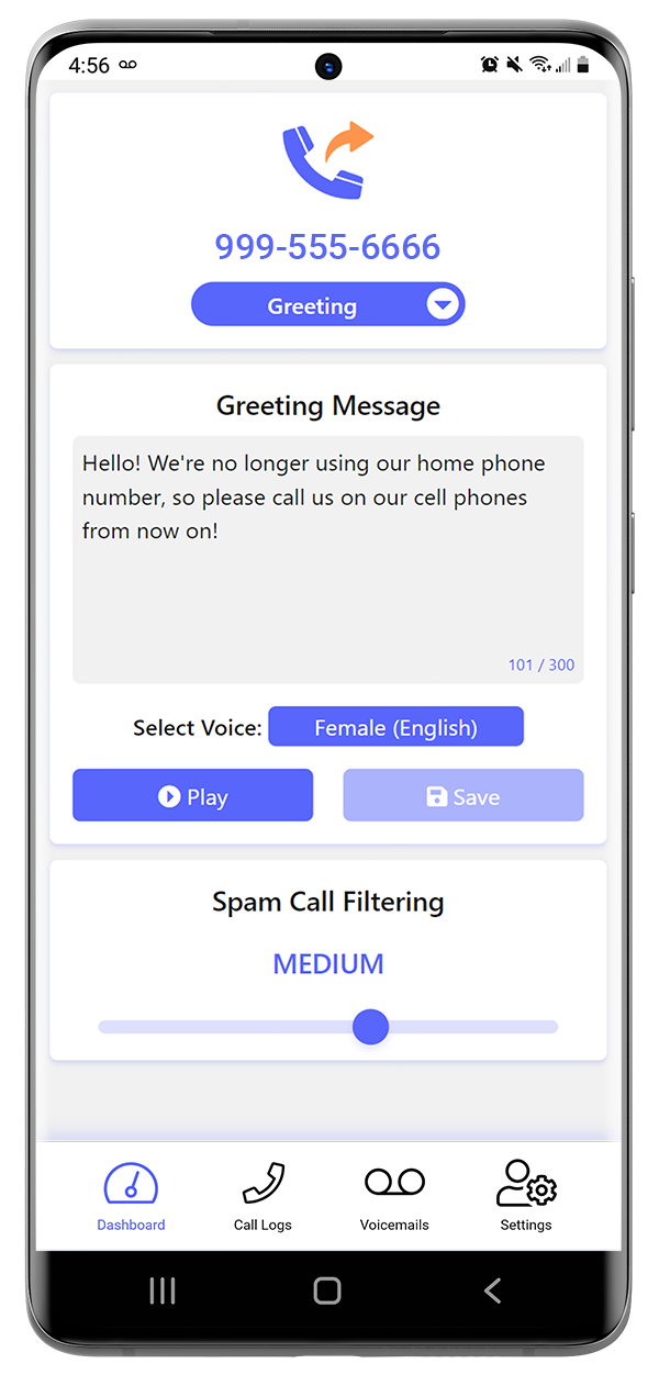 Send all calls straight to voicemail. Set your custom greeting and be notified by e-mail or push notification when you receive a message.